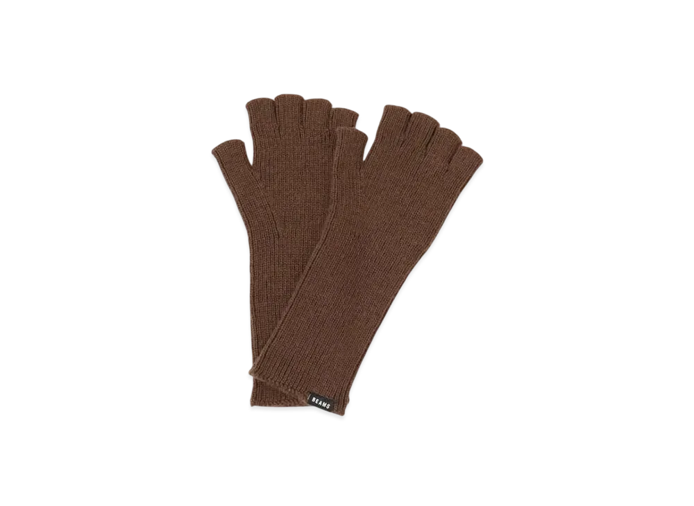 BEAMS Rim Knit Fingerless Gloves "Brown"