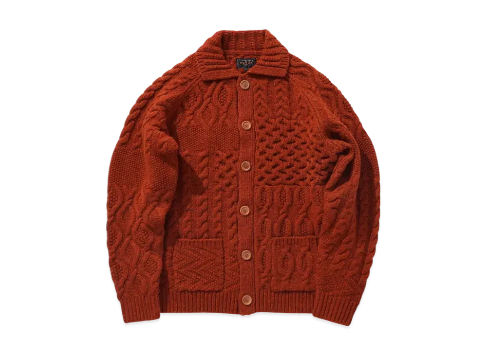 BEAMS Cardigan Alan Patchwork "Orange"