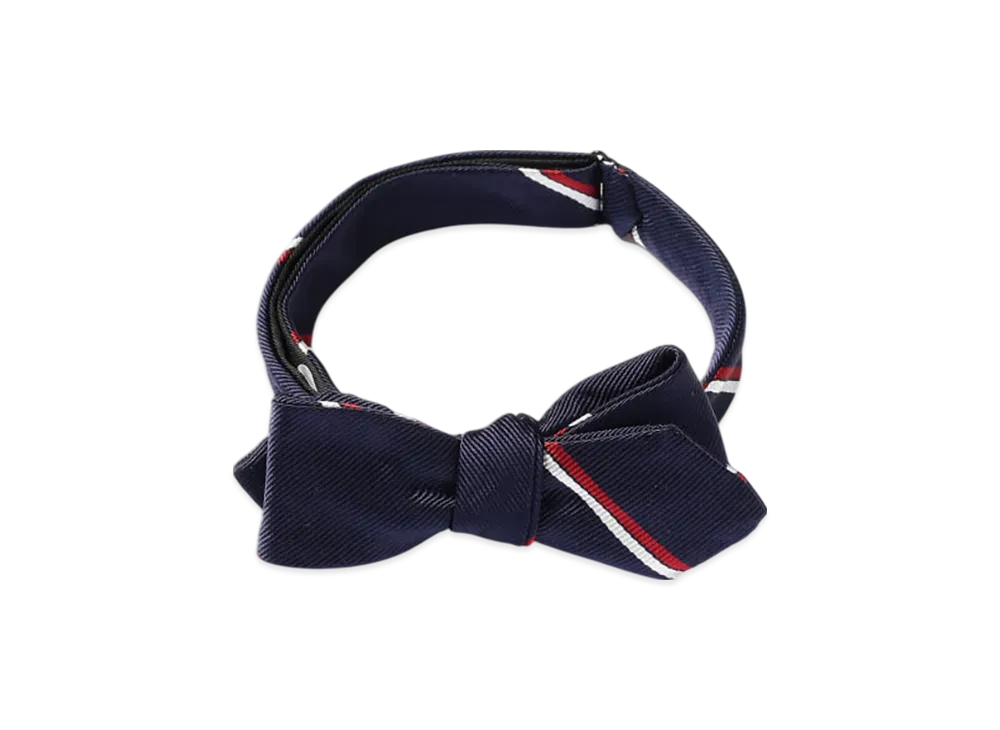 BEAMS Silk Bow Tie Wide Regimental "Navy"