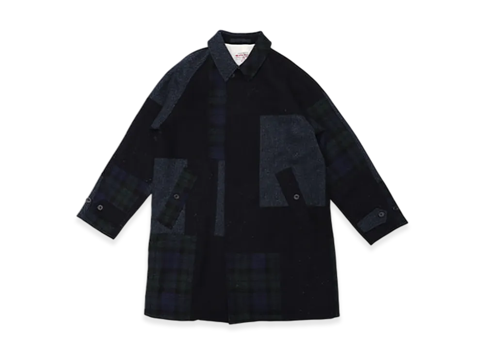 BEAMS PLUS x ACADEMY by Chris Echevarria Bal Collar Coat Harris Tweed Patchwork "Navy"