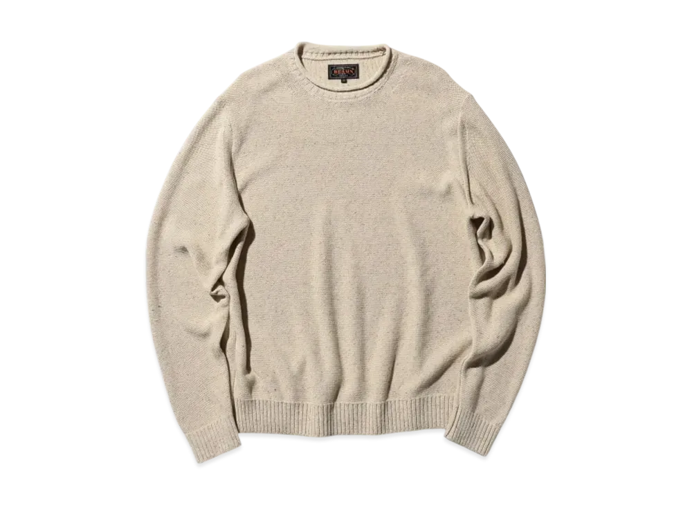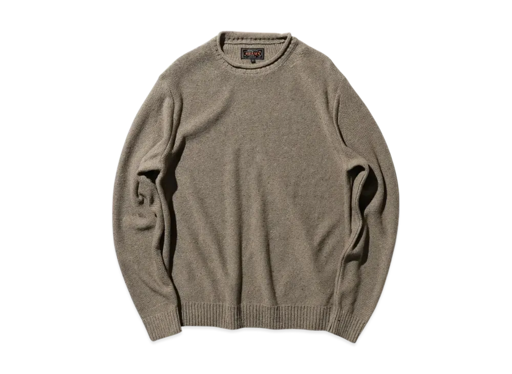 BEAMS Crew Cable Cotton Linen "Khaki"