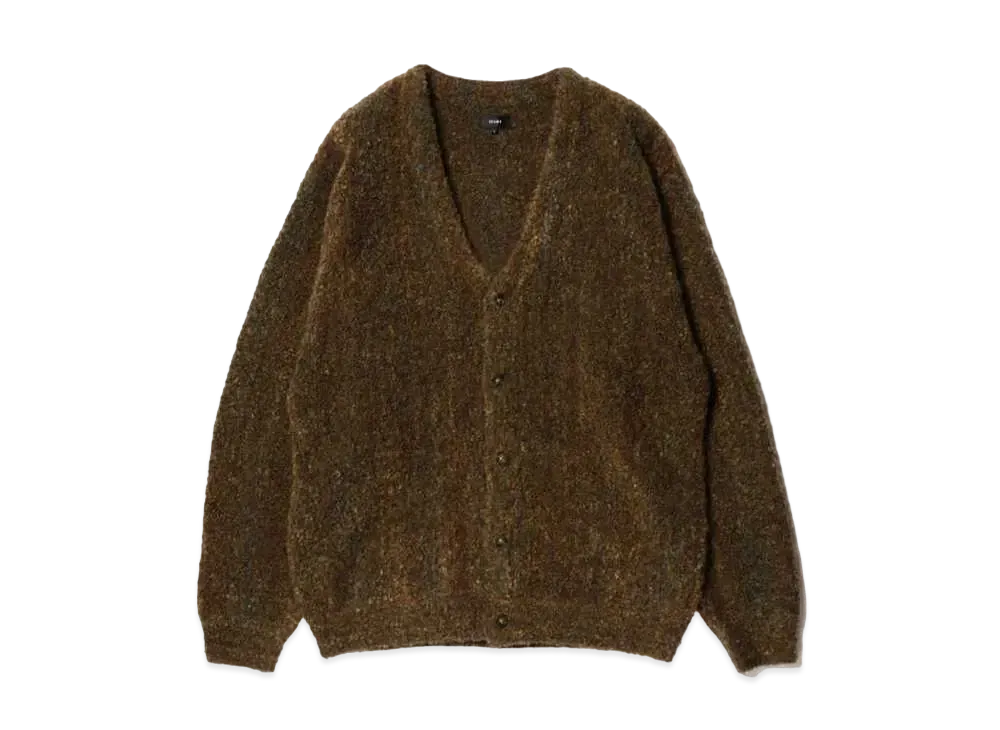 BEAMS 5 Gauge Boucle Striped Cardigan "Brown"