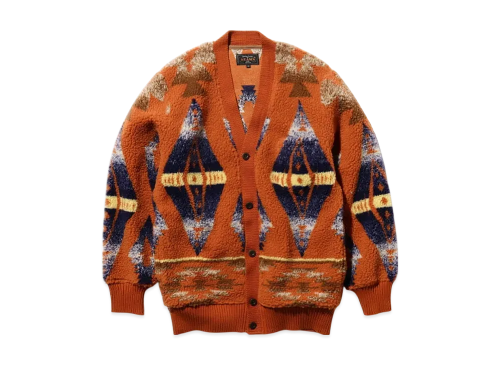 BEAMS Cardigan Boa Jacquard "Orange"