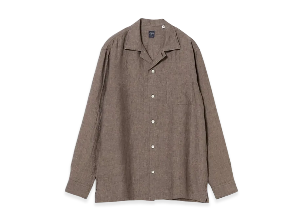BEAMS Solid Linen Open Collar Shirt "Brown"