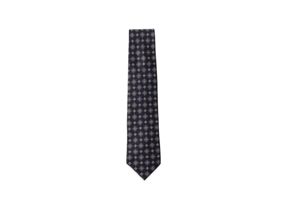 BEAMS Adamley Silk Fine Pattern Print Tie "DarkNavy"