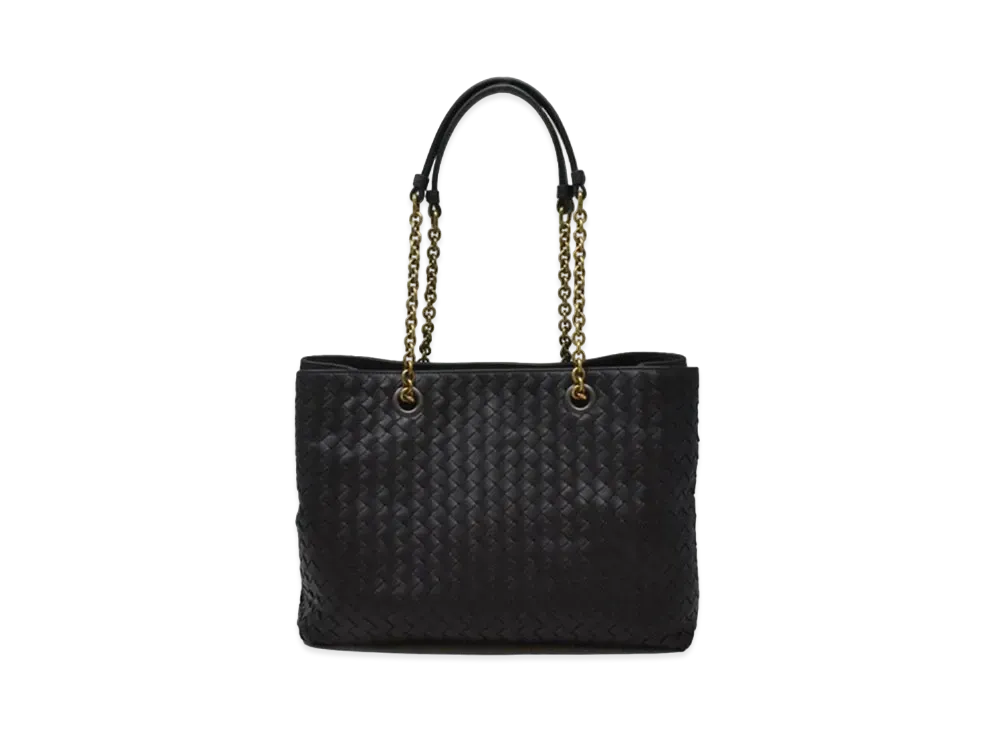 Bottega Veneta Lambskin Intrecciato Shoulder Bag "Black"