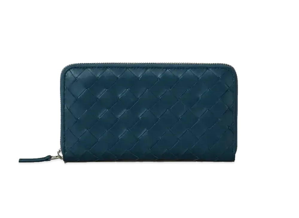 Bottega Veneta Intrecciato Lambskin Calfskin Zip Around Wallet "Deep Blue"