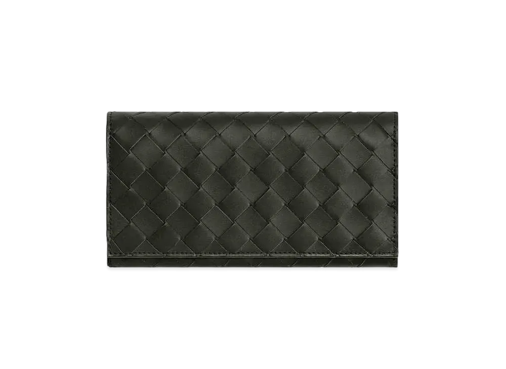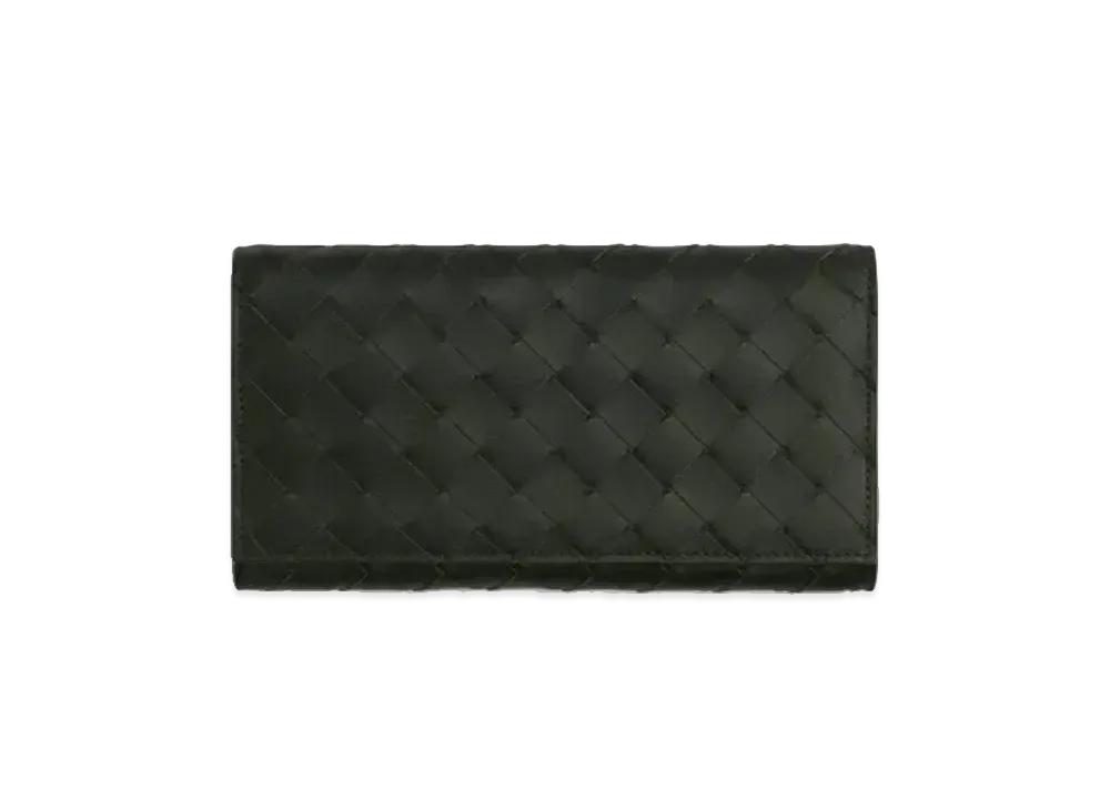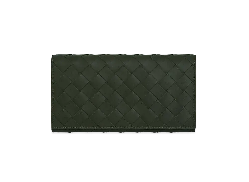 Bottega Veneta Intrecciato Lambskin Calfskin Flap Wallet "Olive Green"