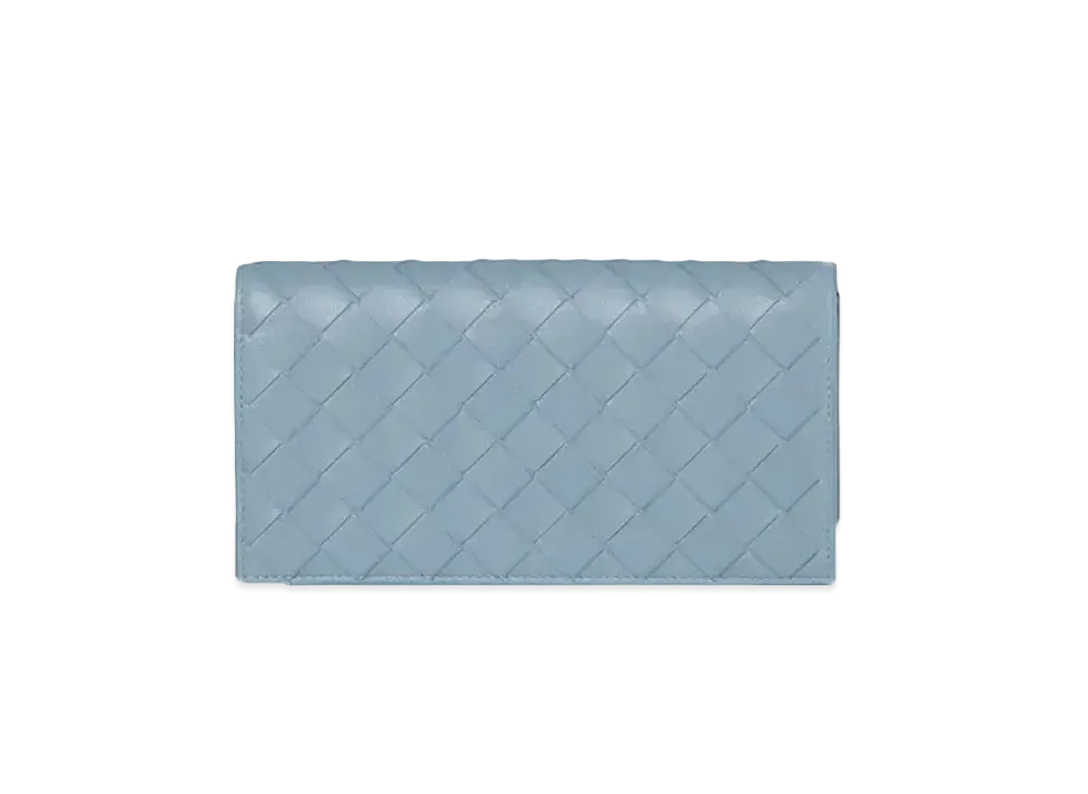 Bottega Veneta Intrecciato Lambskin Calfskin Flap Wallet "Ice Blue"