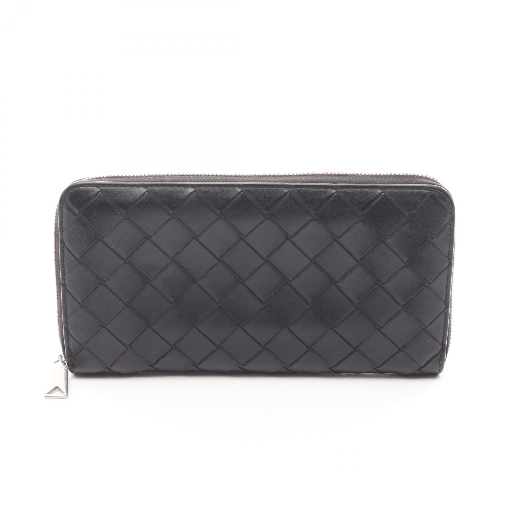 ボッテガヴェネタ BOTTEGA VENETA イントレチャート ラウンド長財布 財布 レザー レディース ブラック系 【中古】
