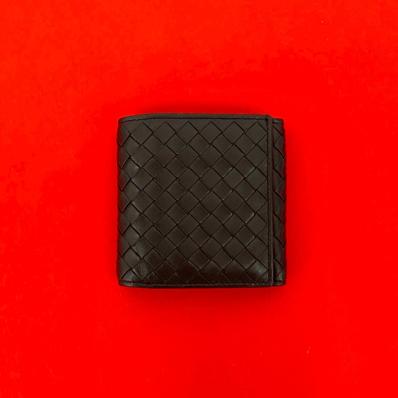 BOTTEGA VENETA ボッテガヴェネタ イントレチャート レザー 二つ折り財布 ブラック