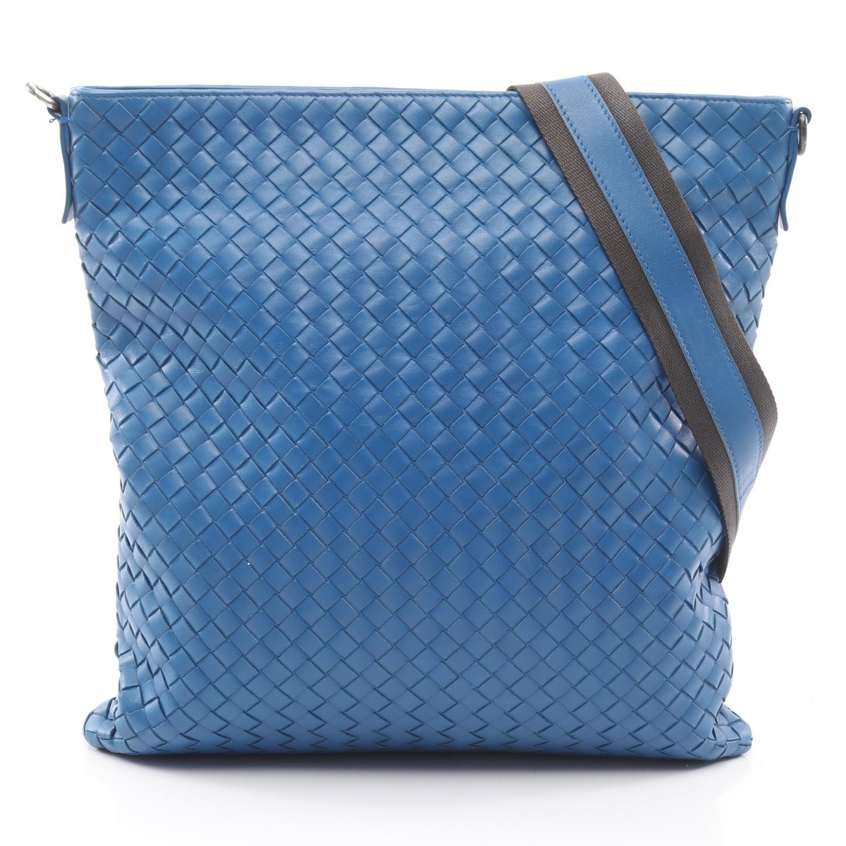 ボッテガヴェネタ BOTTEGA VENETA イントレチャート ショルダーバッグ バッグ レザー メンズ ブルー系 【中古】