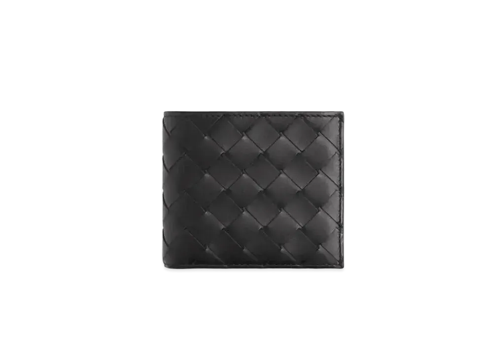 Bottega Veneta Intrecciato Calfskin Bi-fold Wallet "Black/Prakeet"