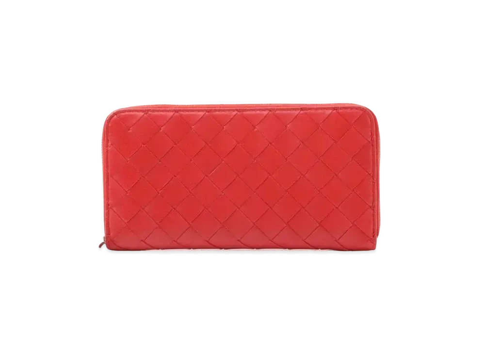 Bottega Veneta Intrecciato Lambskin Calfskin Zip Around Wallet "Cranberry"