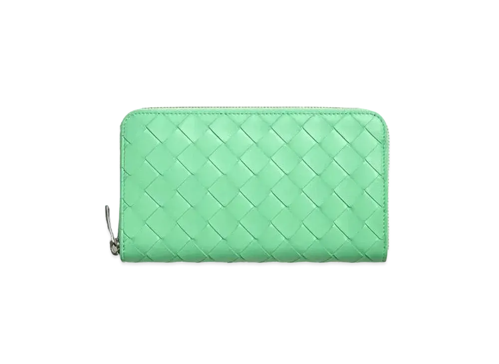 Bottega Veneta Intrecciato Lambskin Calfskin Zip Around Wallet "Fountain"