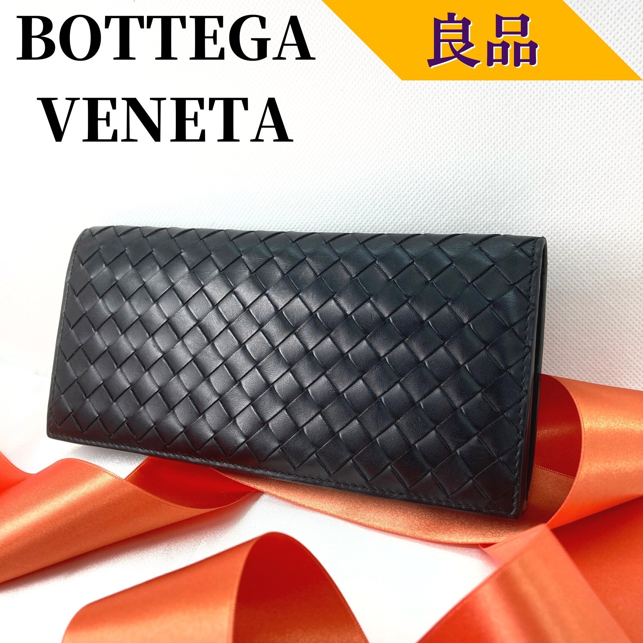 【良品】ボッテガヴェネタ イントレチャート 二つ折り長財布 小銭入れなし