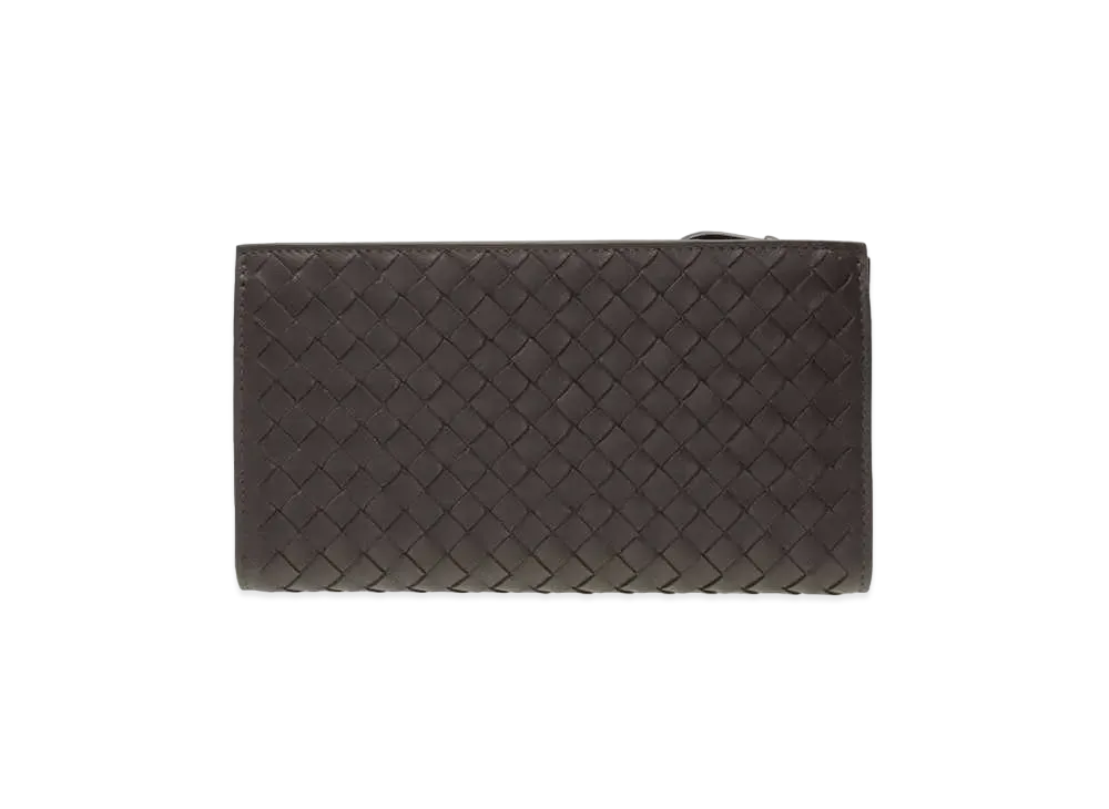 Bottega Veneta Intrecciato Lambskin Long Zipper Button Wallet "Ebano"