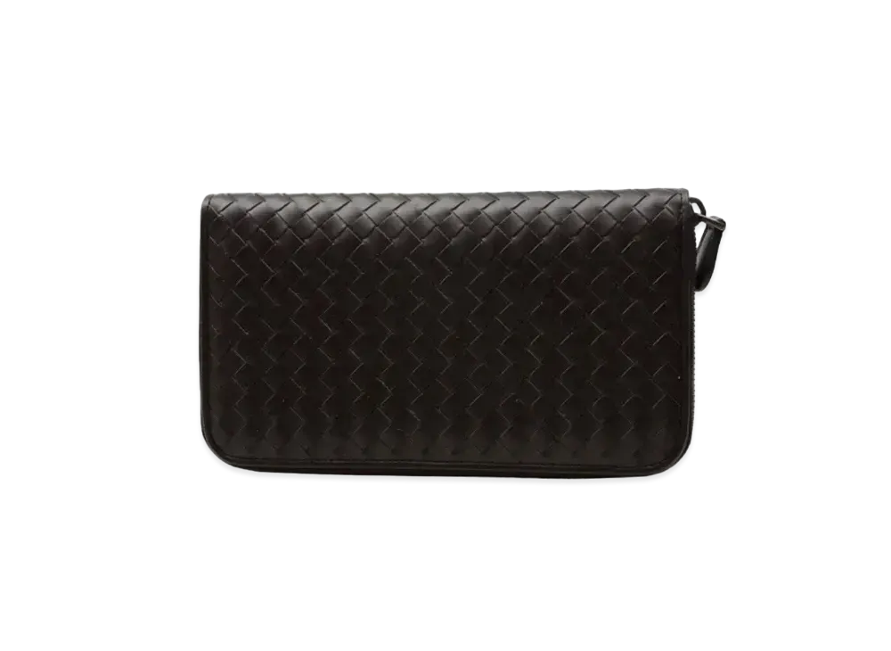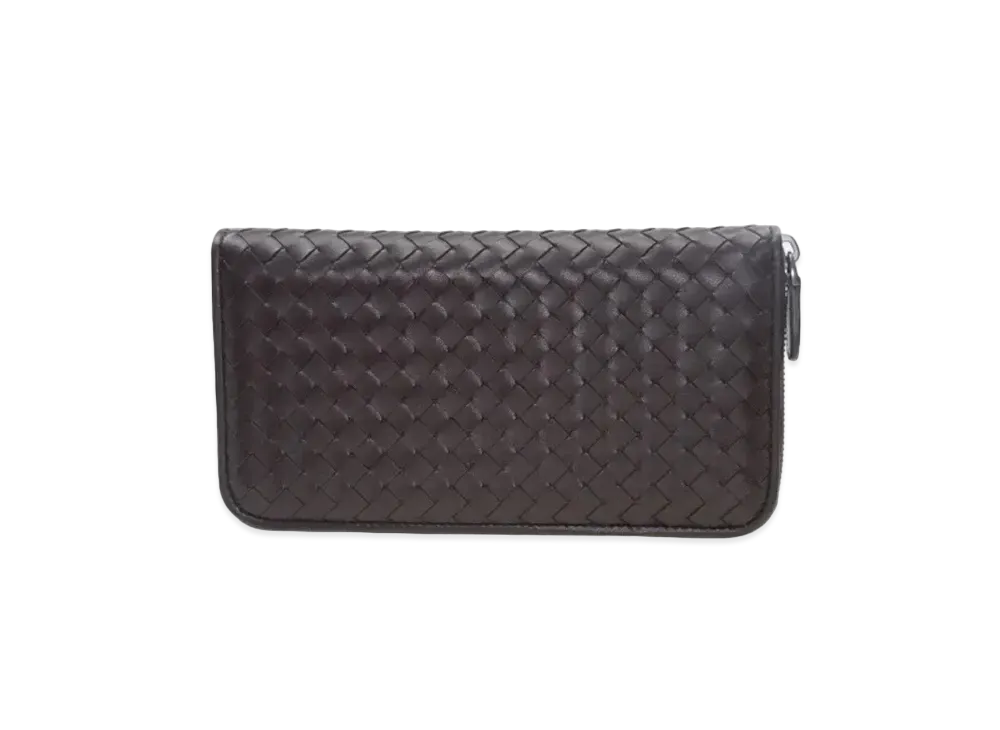 Bottega Veneta Intrecciato Lambskin Zip Around Wallet "Ebano"