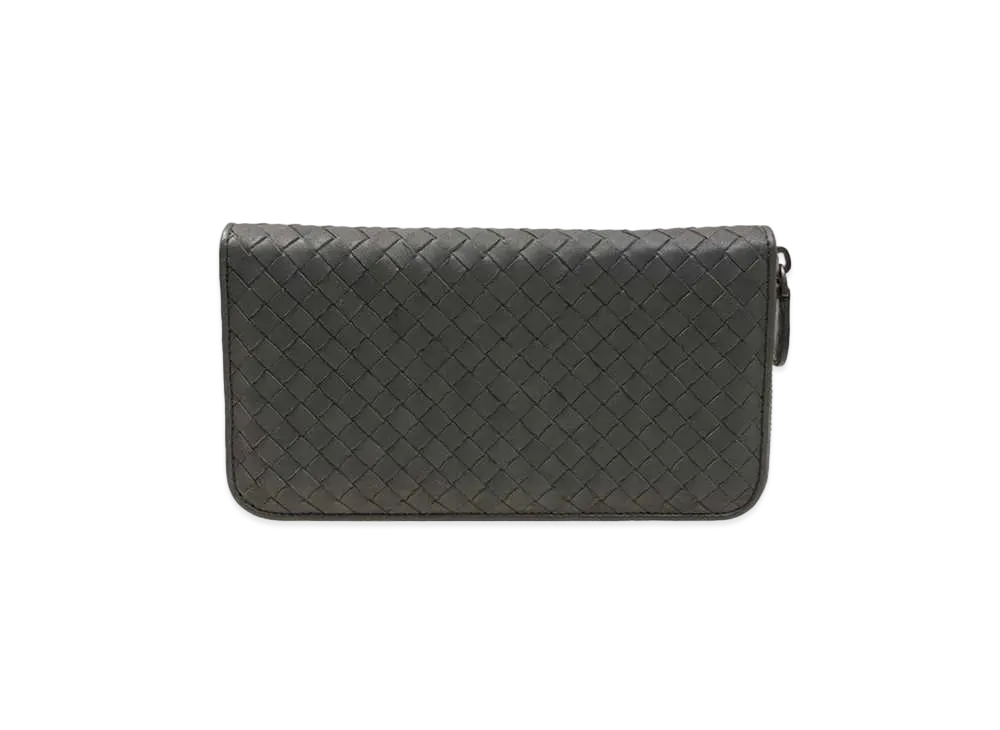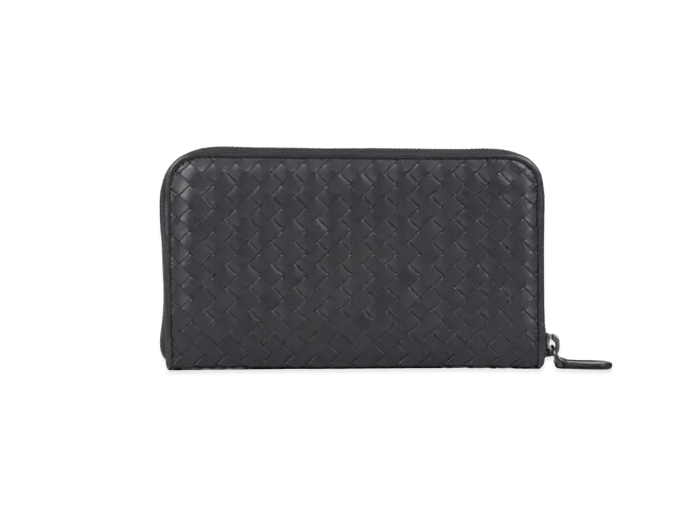 Bottega Veneta Intrecciato Lambskin Zip Around Wallet "Dark Gray"