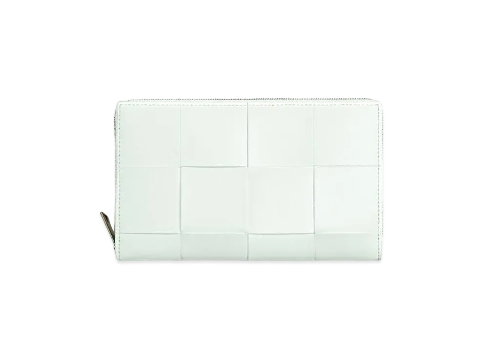 Bottega Veneta Casette Maxi Intrecciato Calfskin Bi-fold Zip Around Wallet "White"