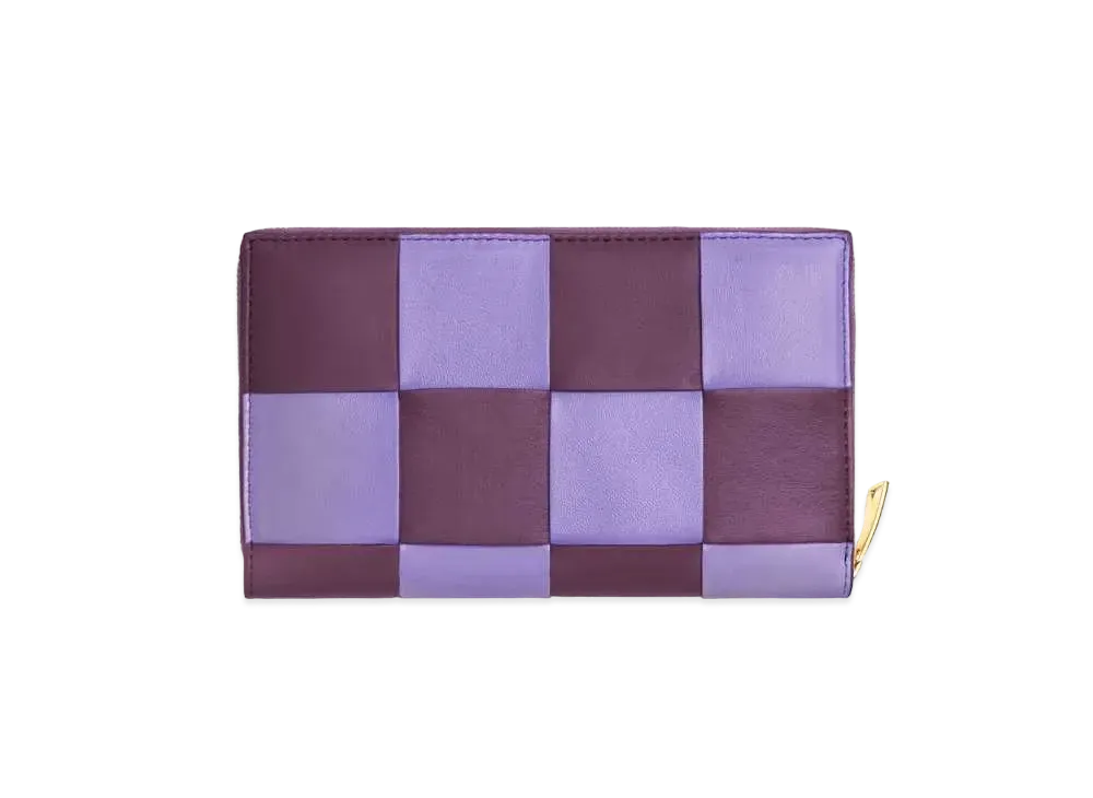 Bottega Veneta Casette Maxi Intrecciato Lambski Zip Trifold Wallet "Wisteria"