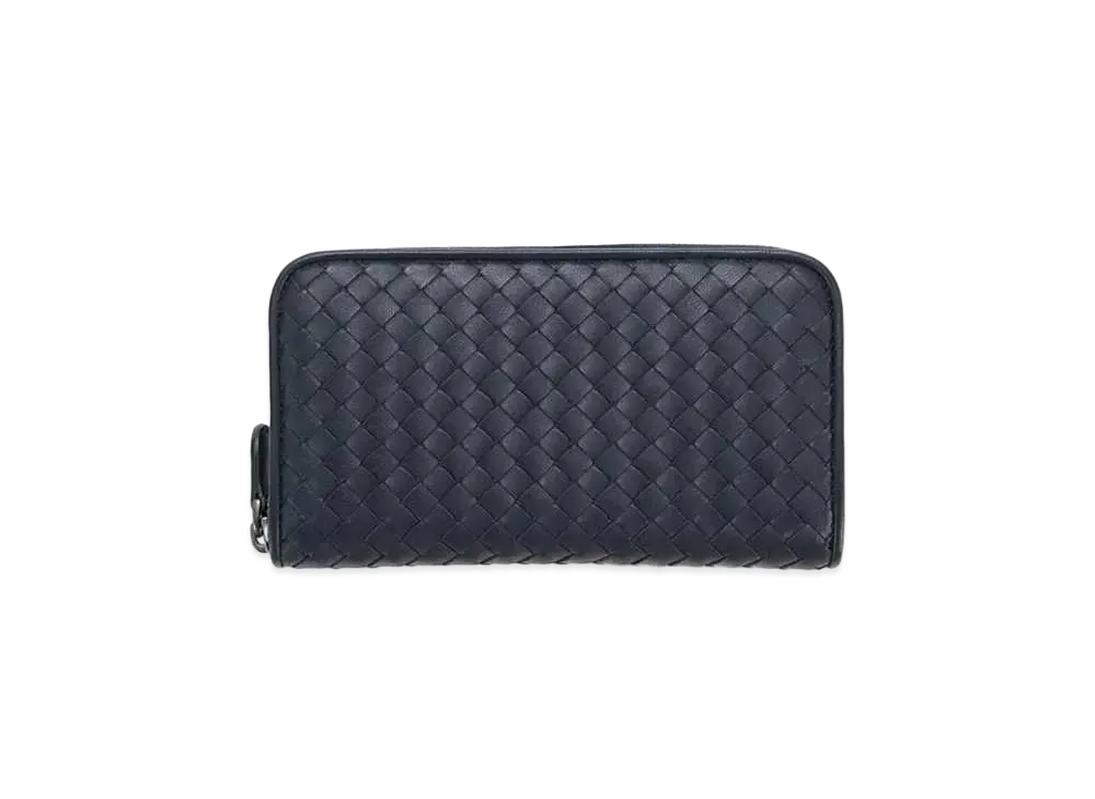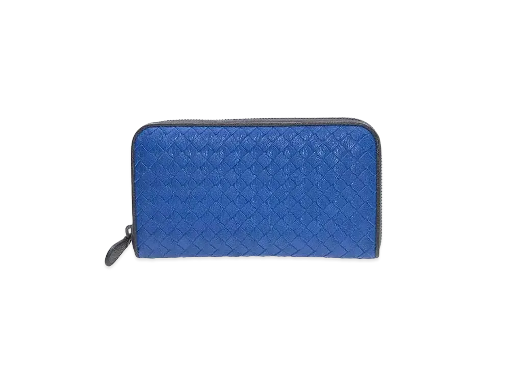Bottega Veneta Intrecciato Lambskin Zip Around Wallet "Blue/Black"