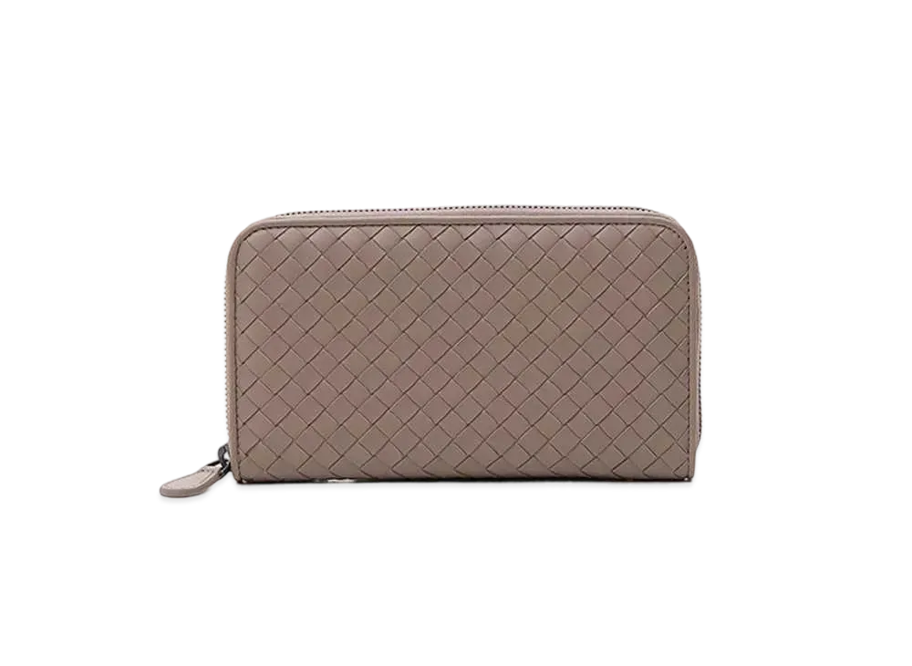 Bottega Veneta Intrecciato Lambskin Zip Around Wallet "Limestone"