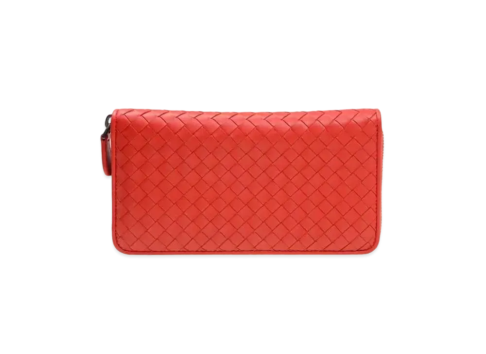 Bottega Veneta Intrecciato Lambskin Zip Around Wallet "Bright Red"