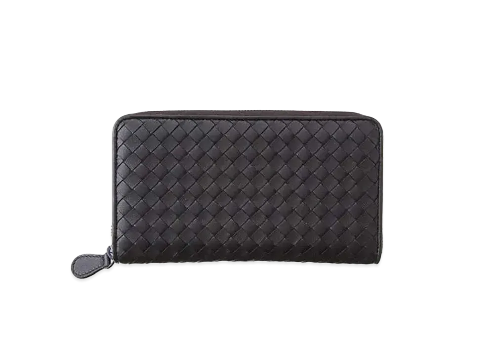 Bottega Veneta Intrecciato Lambskin Zip Around Wallet "Ebano"