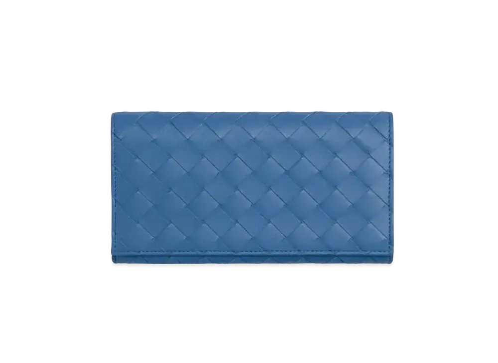 Bottega Veneta Intrecciato Lambskin Calfskin Bi-fold Wallet "Deep Blue"