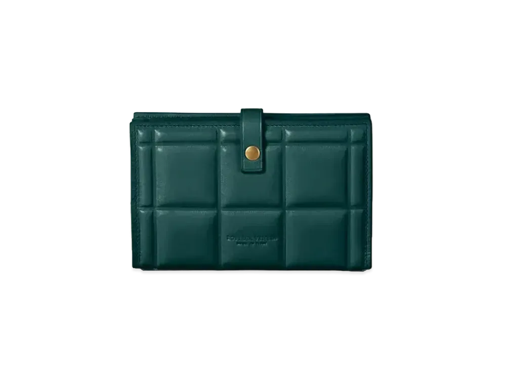 Bottega Veneta Padded Calfskin Bi-fold Button Medium Wallet "Pine"