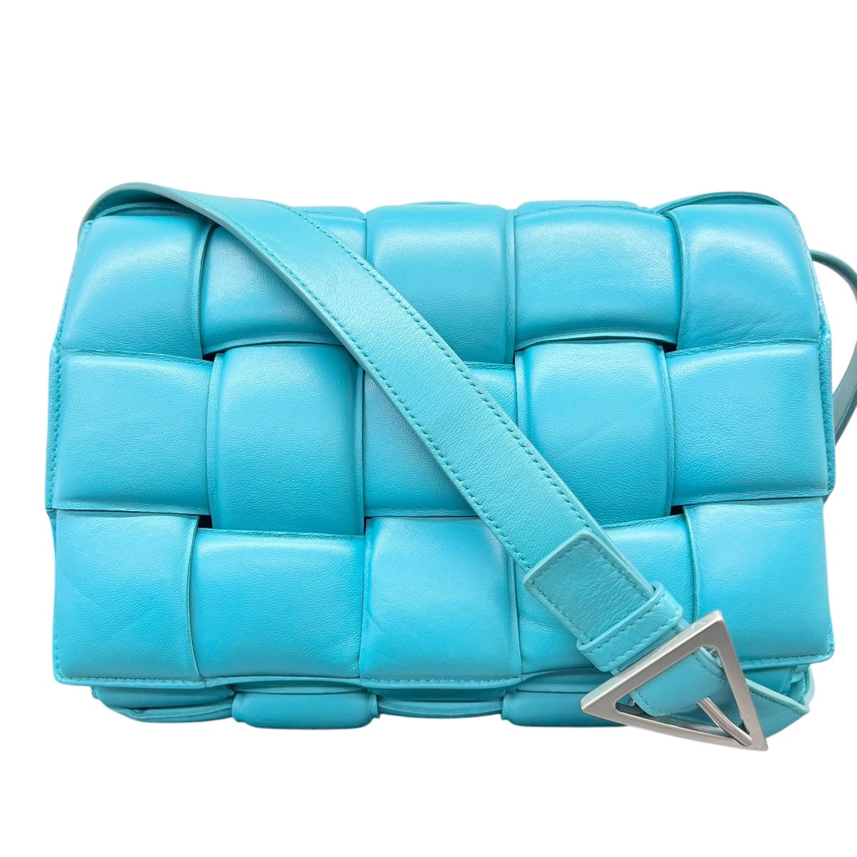 BOTTEGA VENETA 美品 ボッテガヴェネタ パデット カセット ショルダーバッグ イントレチャート 591970 ラムスキン レザー ブルー クロスボディ ポシェット マキシ RFID確認済 ABランク 中古 鑑定済 ボッテガバッグ
