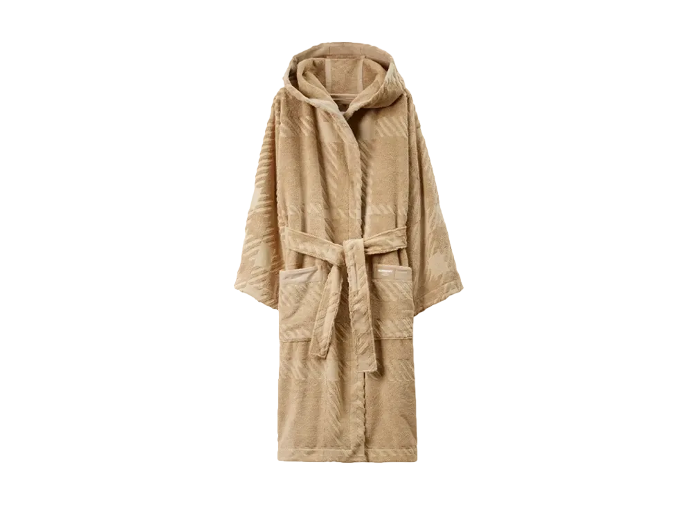 Burberry Men's Check Cotton Jacquard Hooded Robe "Archive Beige"
