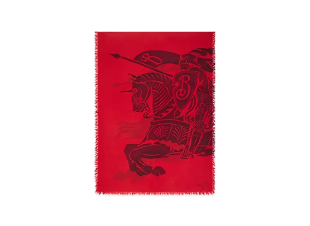 Burberry Wide EKD Wool Scarf "Oxblood"