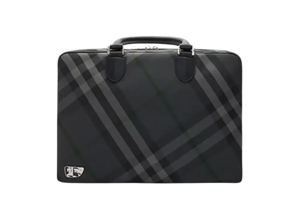 Burberry Grid Check Briefcase "Charcoal"