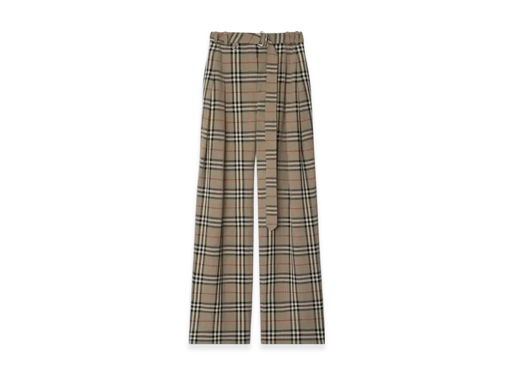 Burberry Check Silk Blend Belted Trousers "Limestone"