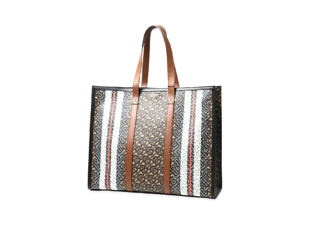 Burberry Small Monogram Stripe E Canvas Tote Bag "Bridle Brown"