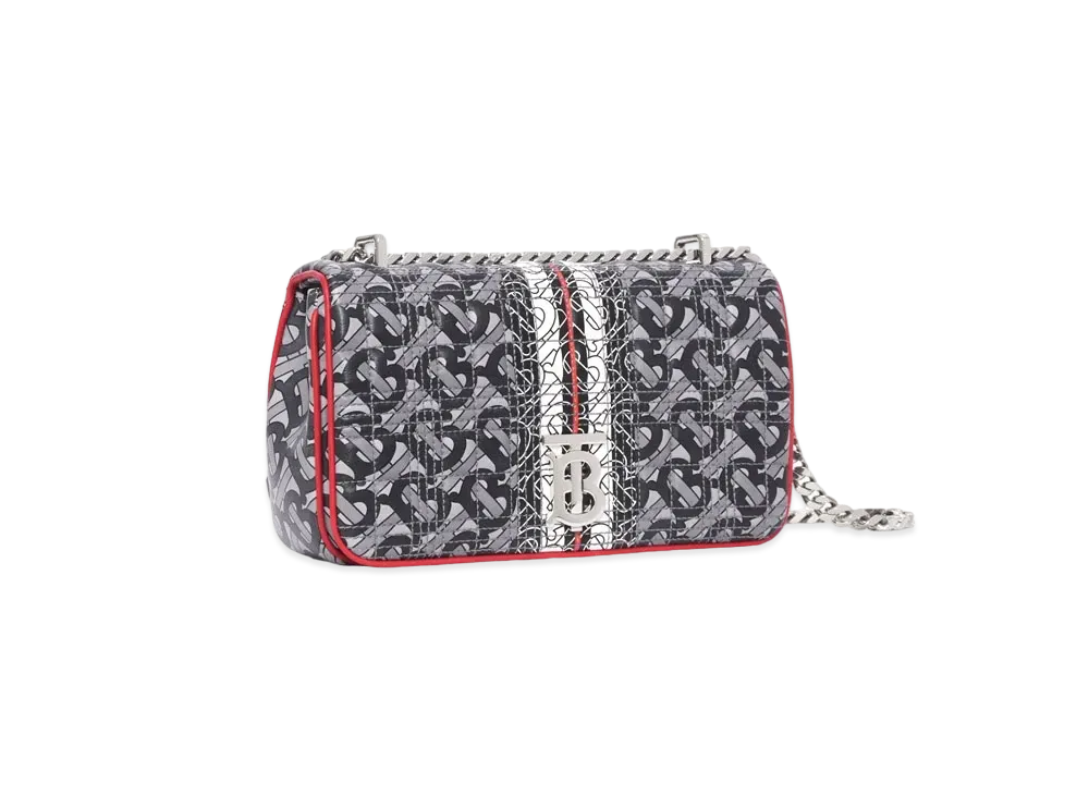 Burberry Small Monogram Stripe Quilted Lambskin Lola Bag "Grey/Red/Black"