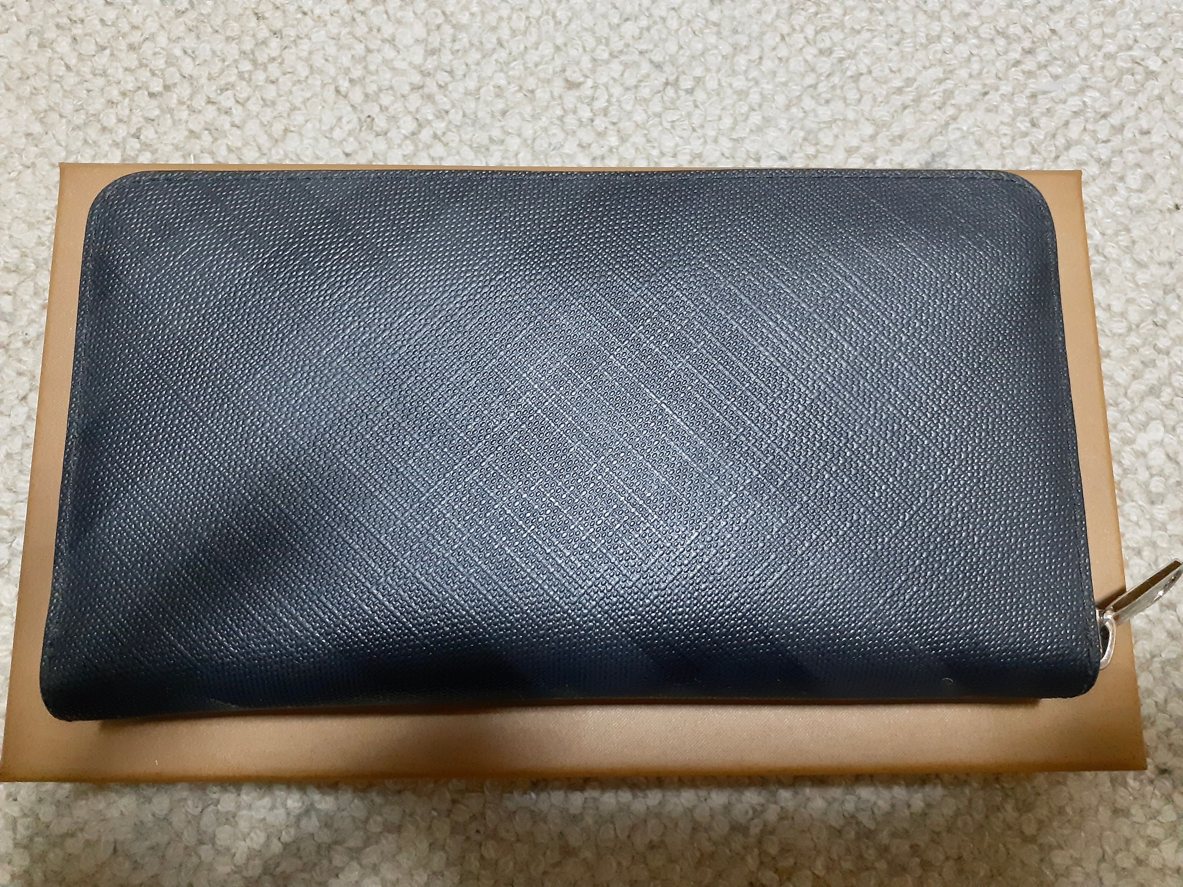 Burberry London Check and Leather Ziparound Wallet "Dark Charcoal"