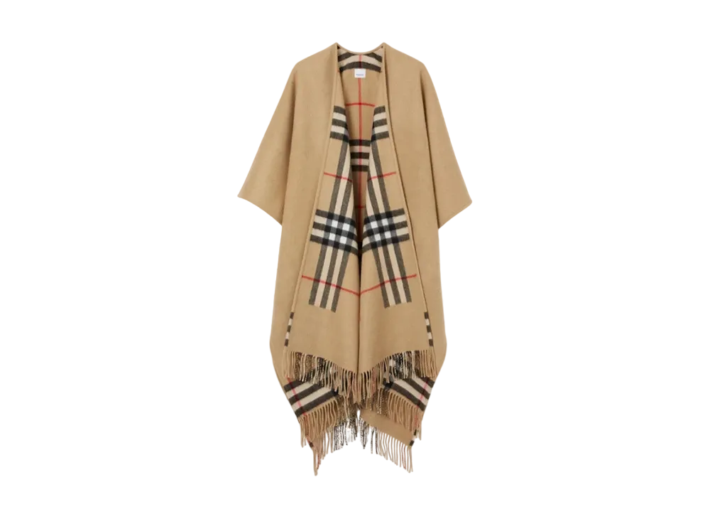 Burberry Check Wool Cashmere Reversible Cape "Archive Beige"