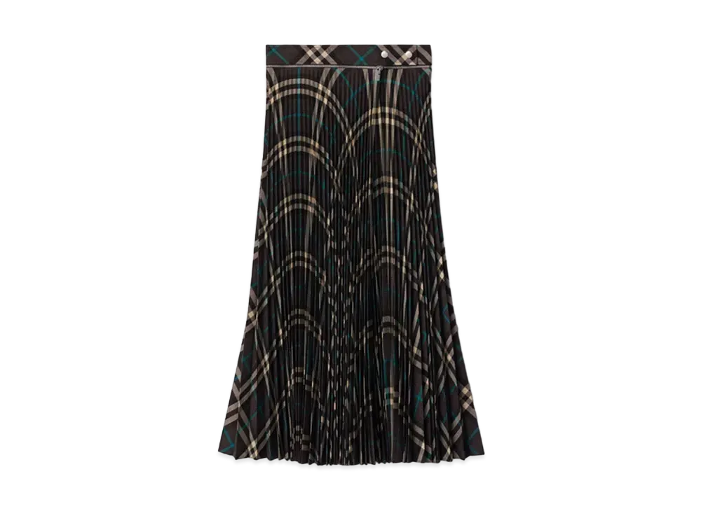 Burberry Women's Pleated Check Wool Blend Skirt "Snug"