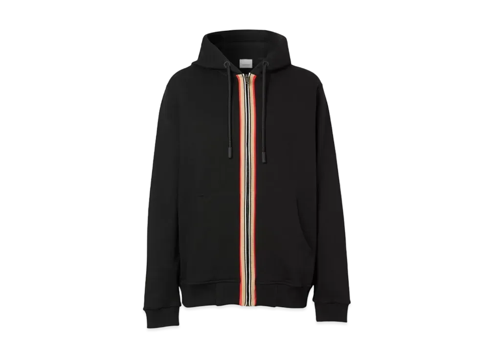 Burberry Men's Icon Stripe Detail Cotton Hooded Top "Black"