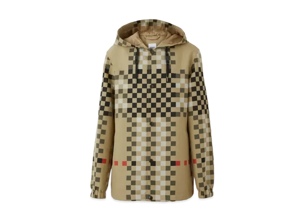 Burberry Men's Pixel Check Nylon Hooded Jacket "Archive Beige"