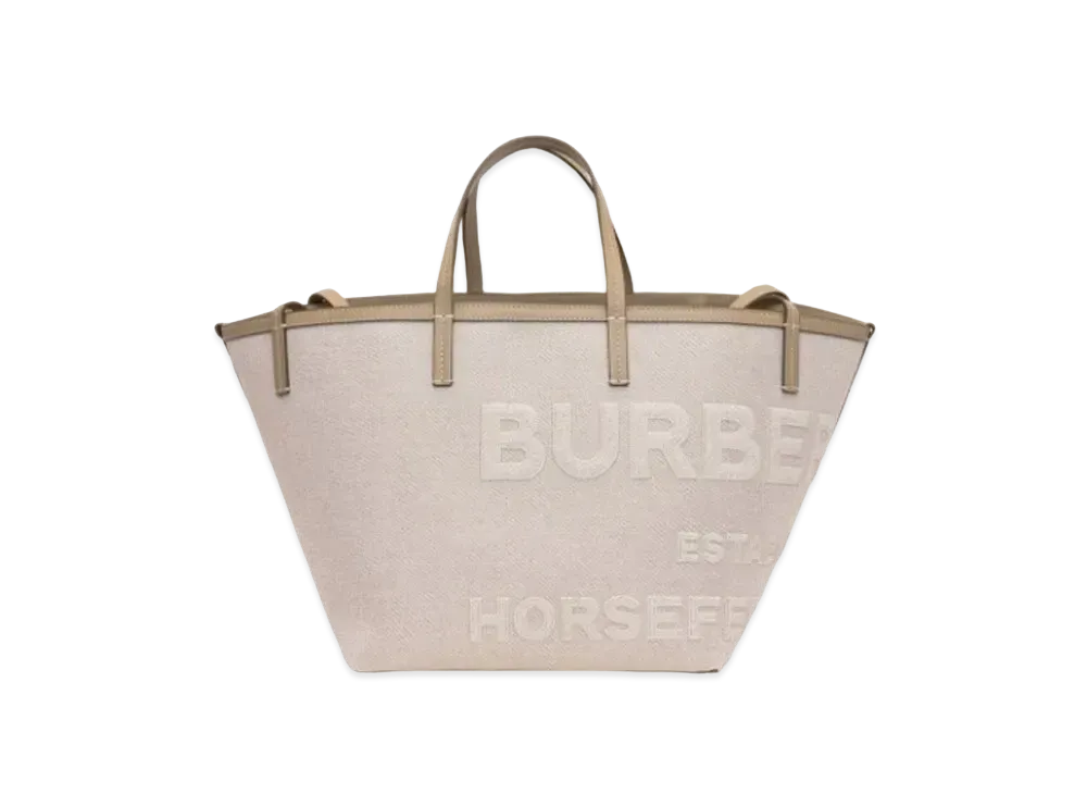 Burberry Mini Horseferry Linen Cotton Canvas Beach Tote "Ecru"