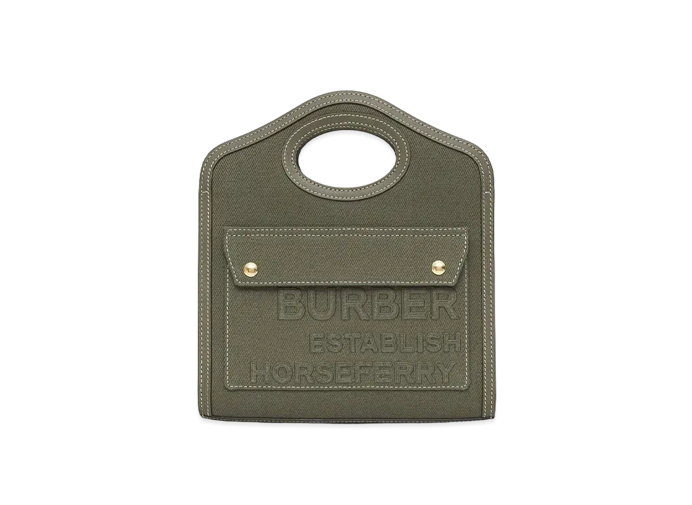 Burberry Mini Horseferry Linen Cotton Canvas Pocket Bag "Dark Fern Green"