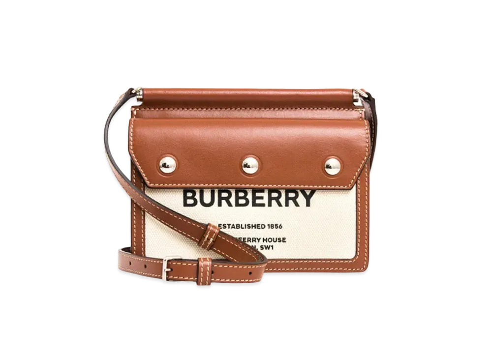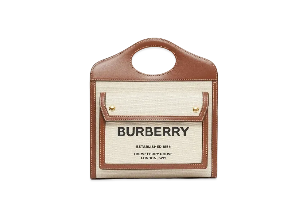 Burberry Mini Two Tone Canvasleather Pocket Bag "Natural/Malt Brown"