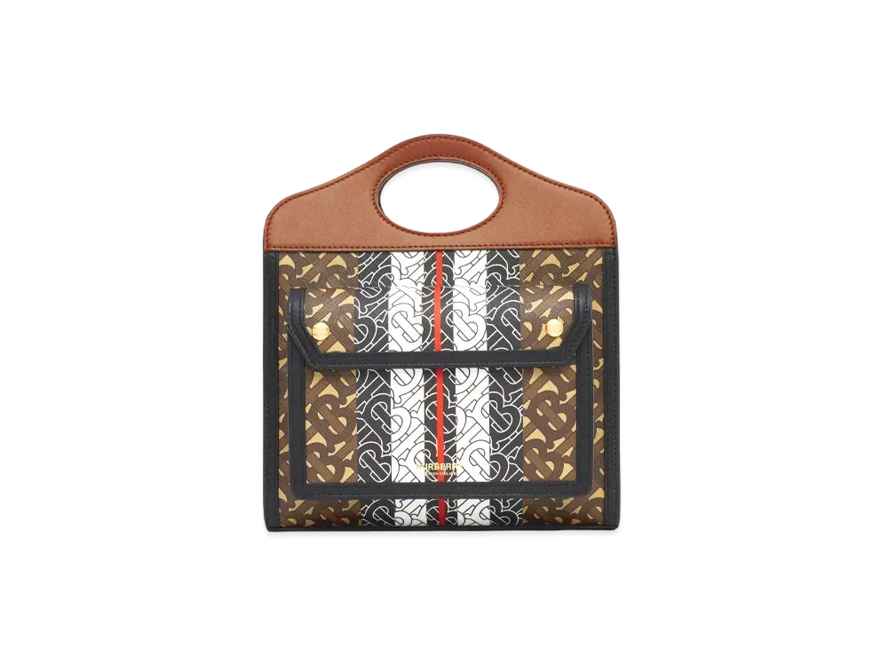 Burberry Mini Monogram Stripe E Canvas Pocket Bag "Bridle Brown"