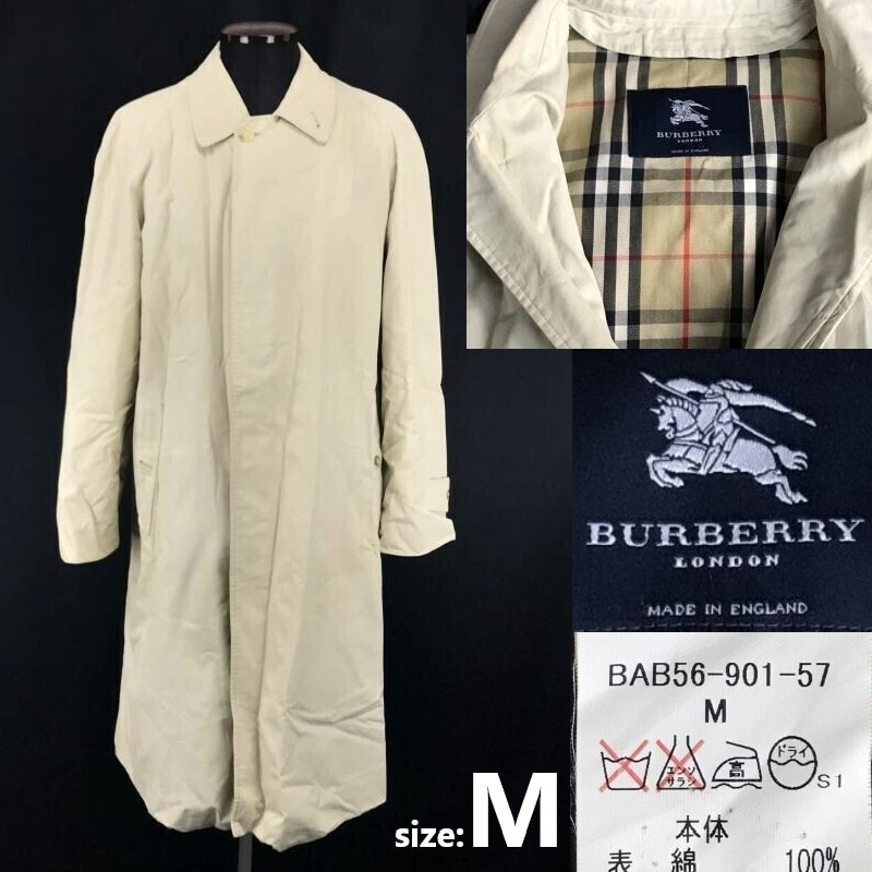 英国/イングランド製★バーバリーロンドン★コットン/ステンカラーコート/アウター【メンズM/ベージュ】裏地チェック/春夏/スプリング/ビジネス◆BG4