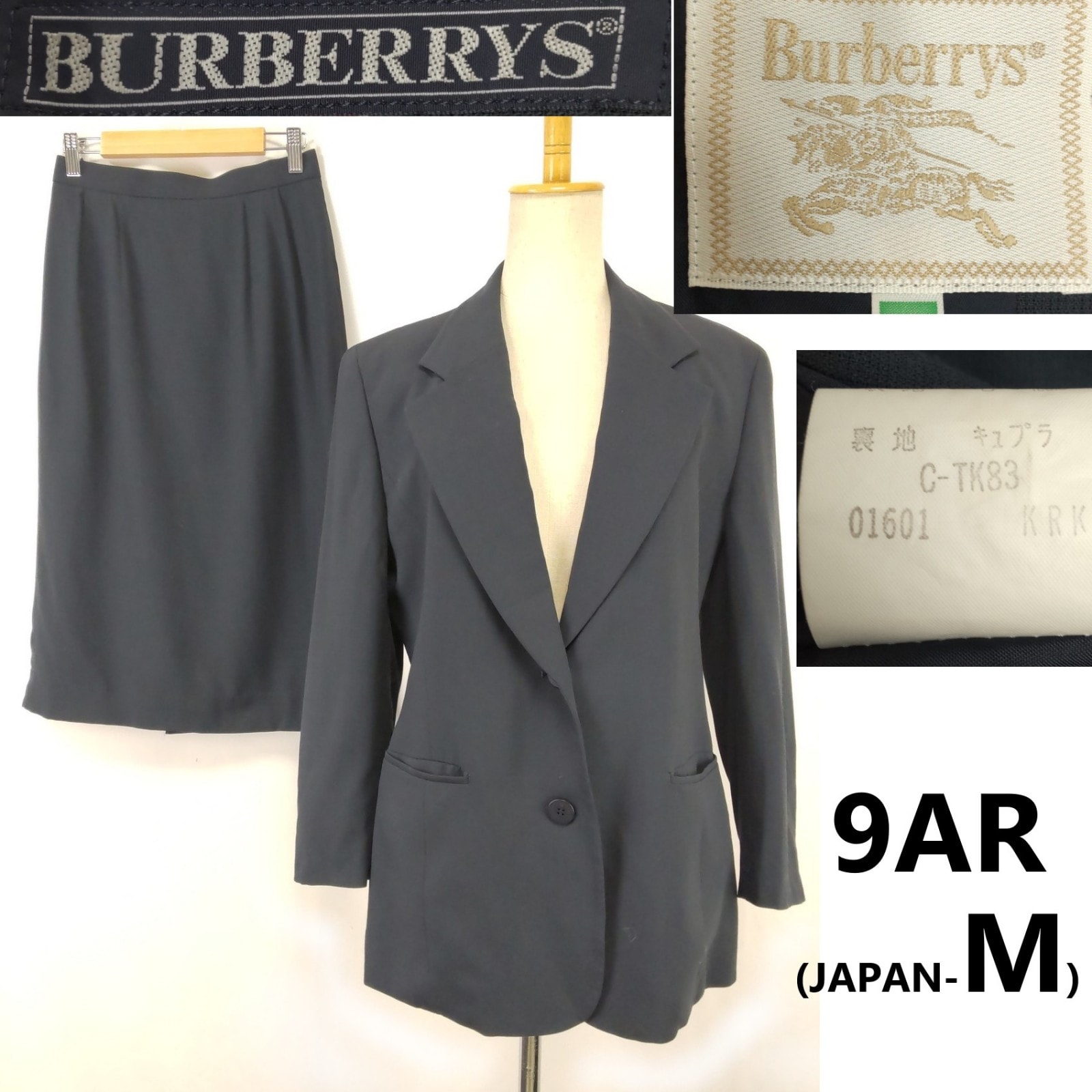 90s/vintage/美品★Burberrys/バーバリー★春夏/ロングスカート スーツ/上下セットアップ【9AR/レディースM/オリーブグレー】Jacket/Skirt◆BJ115-d