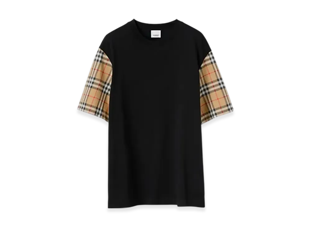 Burberry Check Sleeve Cotton T-shirt "Black"